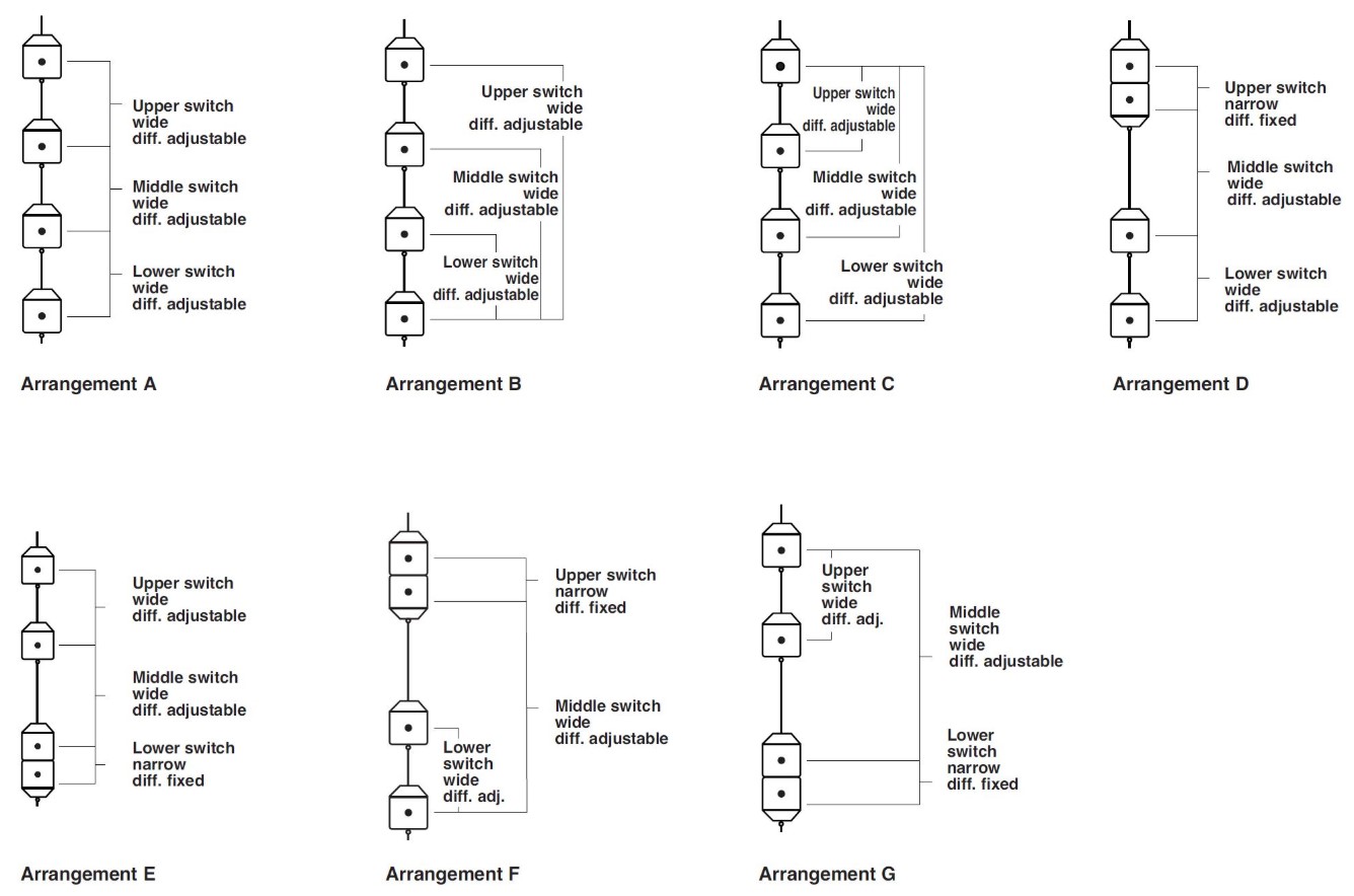 Hasta 3 interruptores con diferencias ajustables o fijas: